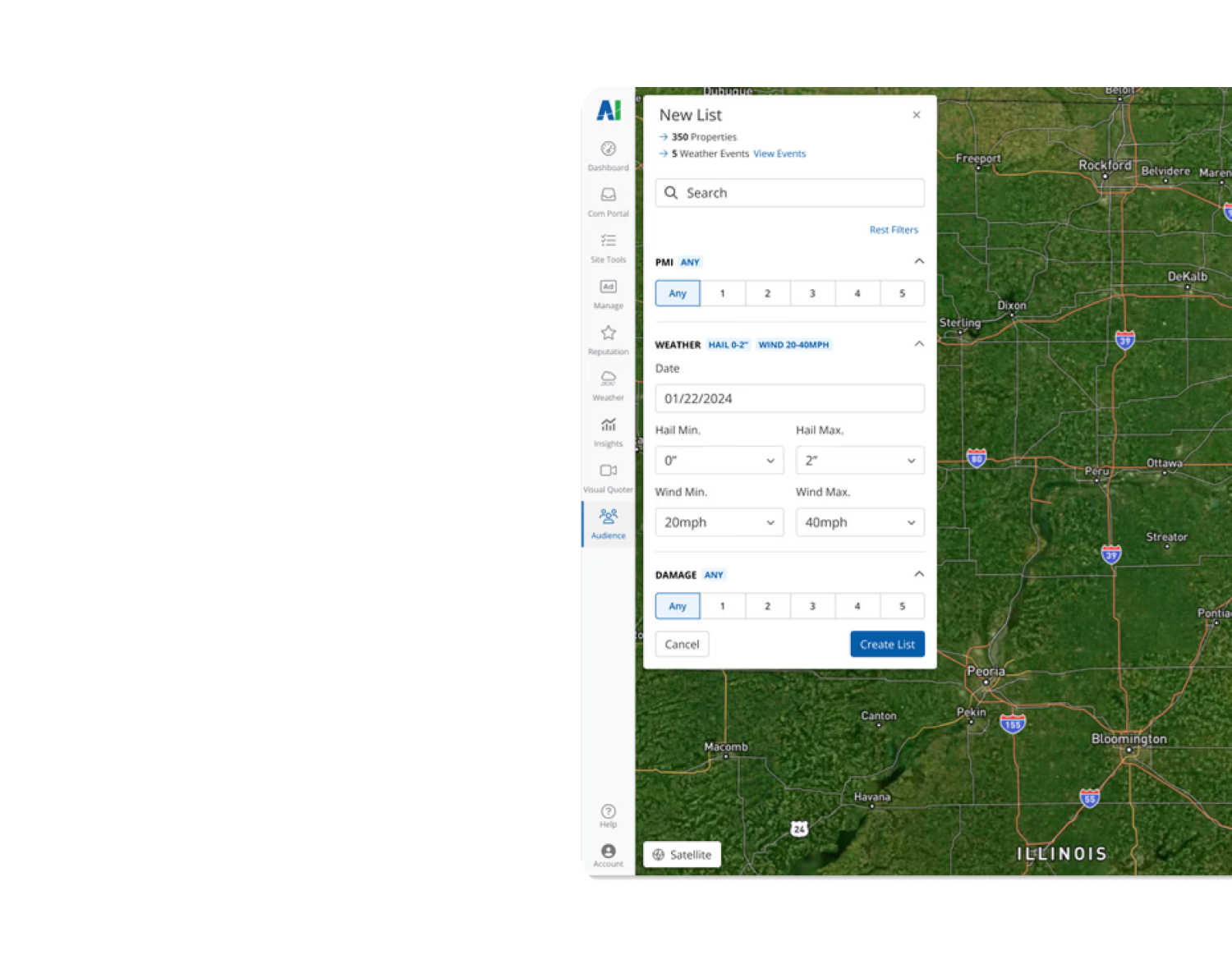 Audience Manager is a specialized search tool for home services. It identifies properties affected by weather events, enhancing lead generation.
